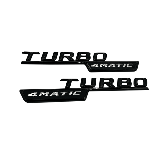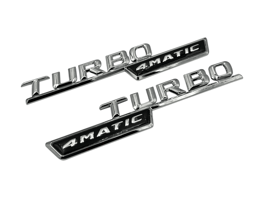 2 stk. Chrome Mercedes Turbo 4-matic Emblemer