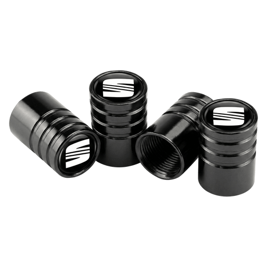 4 stk. Seat Logo Ventilhætter Sort Aluminium