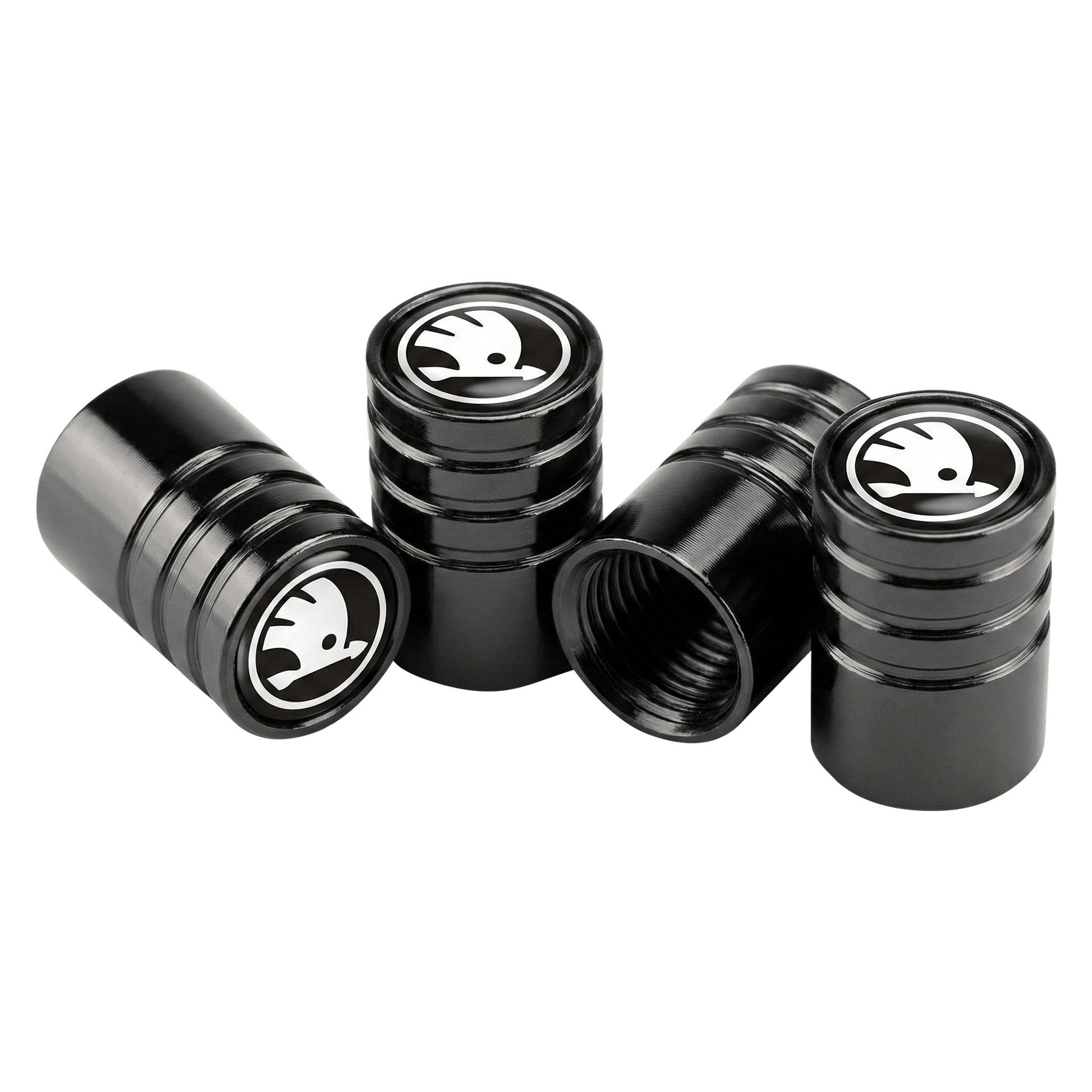 4 stk. Skoda Sort/Hvid 2022+ Logo Ventilhætter Sort Aluminium