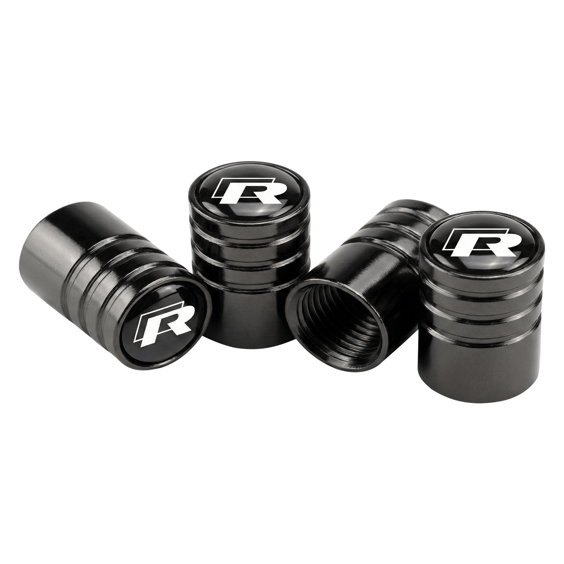 4 stk. VW R-line Logo Ventilhætter Sort Aluminium